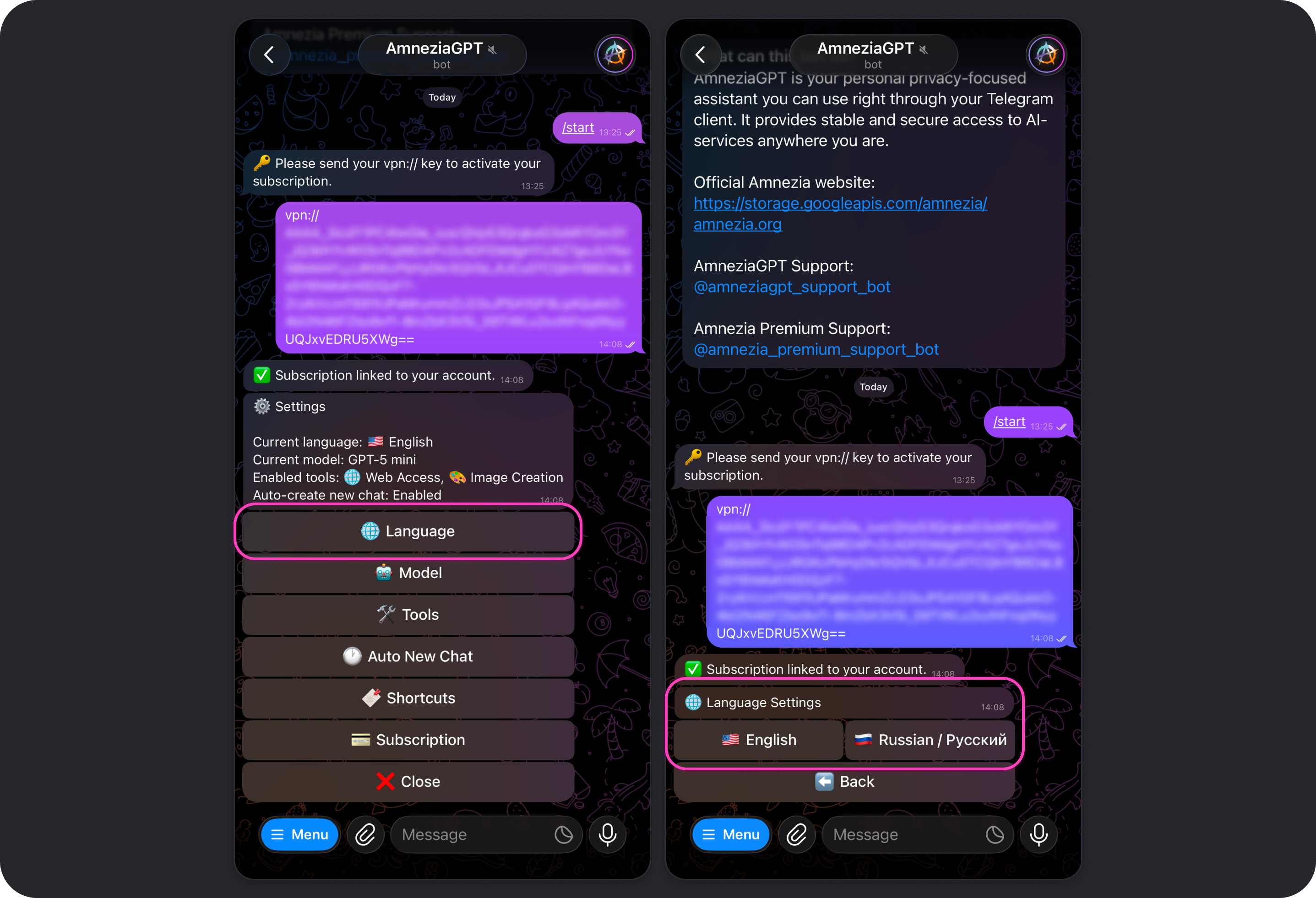 To use Amnezia GPT, you need an active Amnezia Premium subscription and a Telegram account. For now, the bot is available only in Telegram.