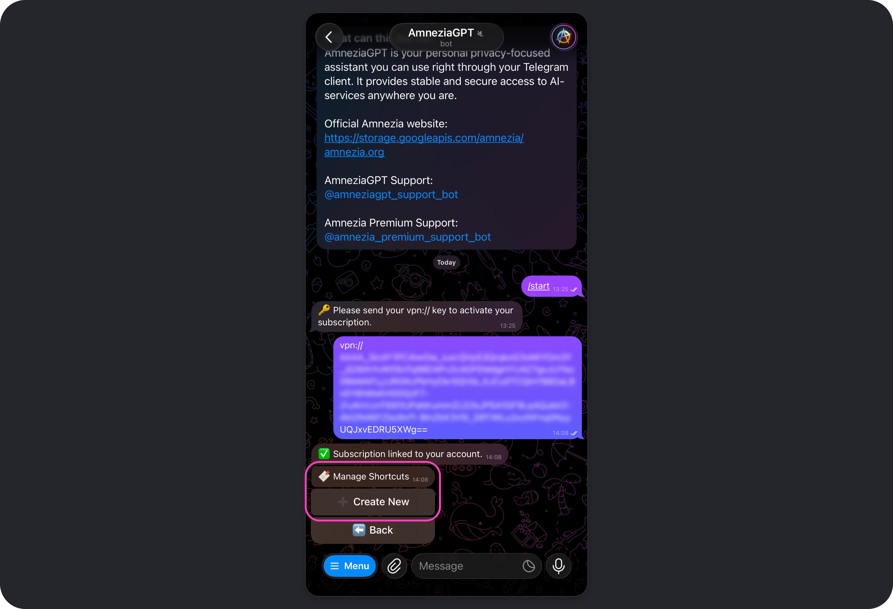 vpn://key to activate my subscription in Amnezia GPT?The