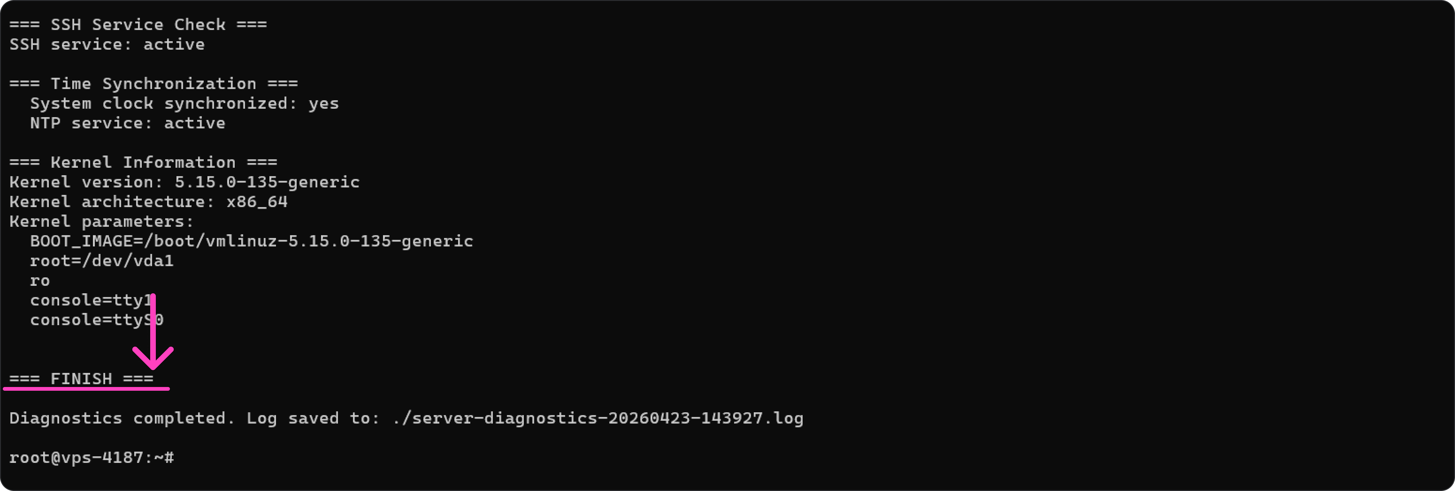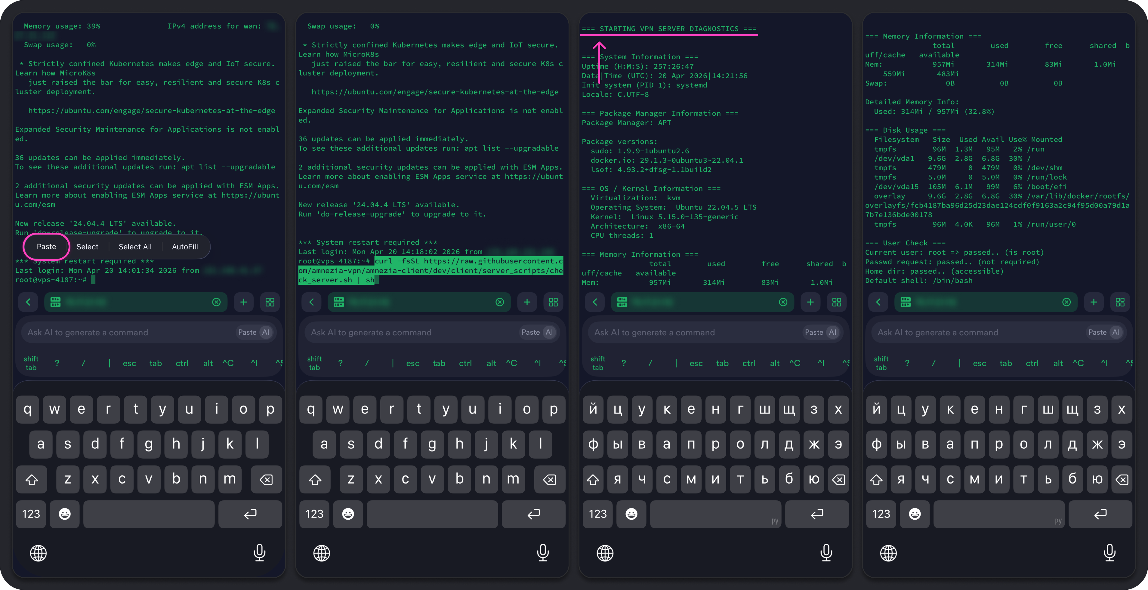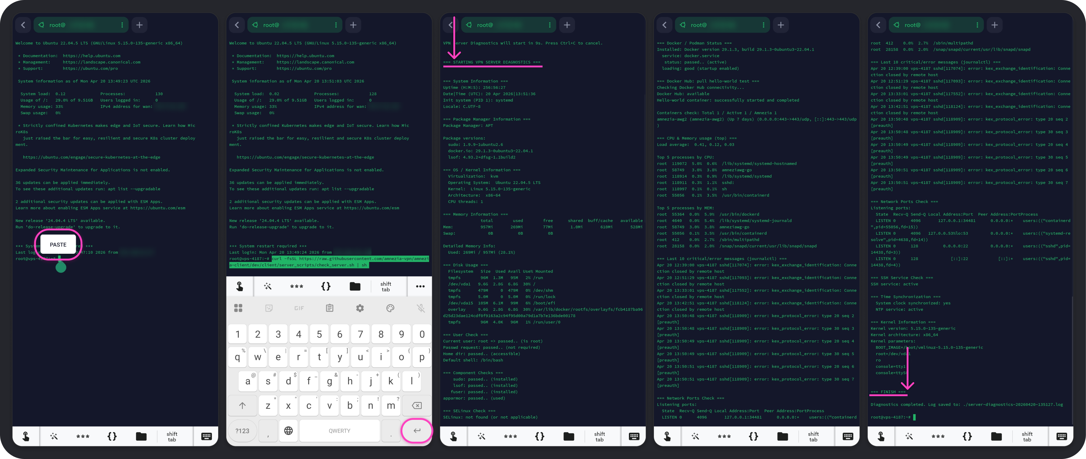 === STARTING VPN DIAGNOSTICS ===до строки=== FINISH ===— эти места обозначены на скриншотах ниже.