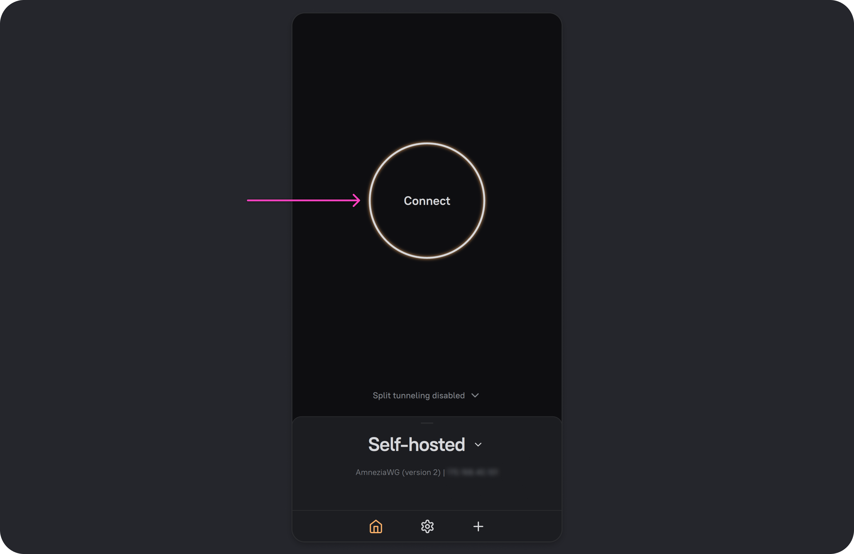 - Open the AmneziaVPN app and tap ➕ (plus icon) or the Get Started button if you have no other connections.