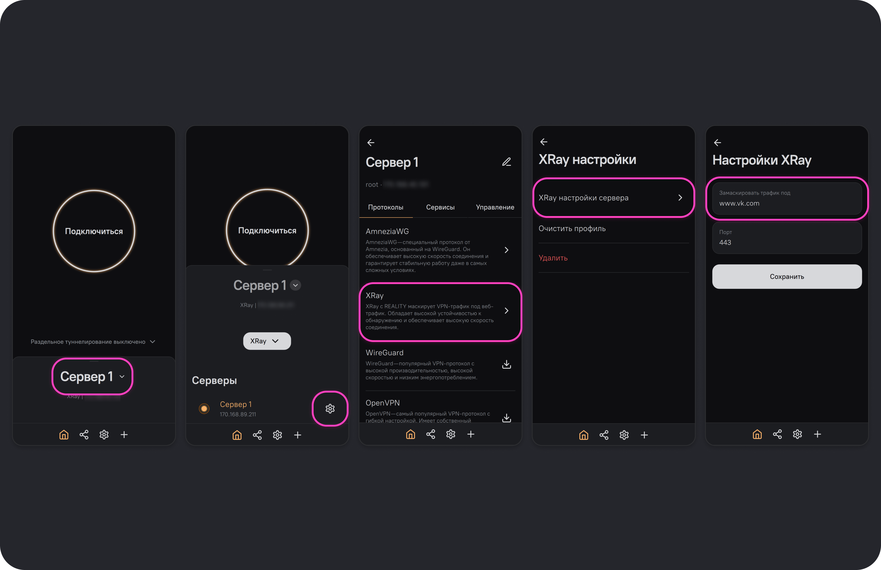- Выберите протокол XRay, далее XRay настройки сервера.
