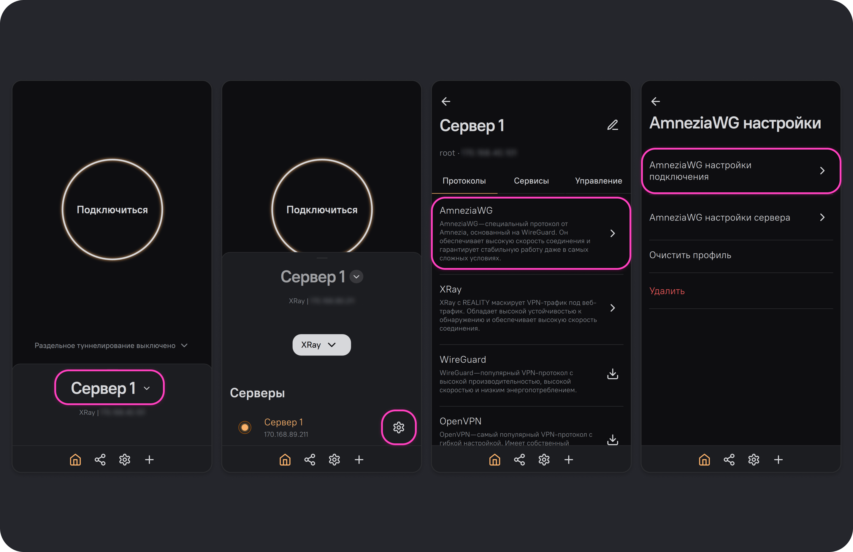 Подробнее в инструкции: Настройка подключения XRay для обхода "белых списков".