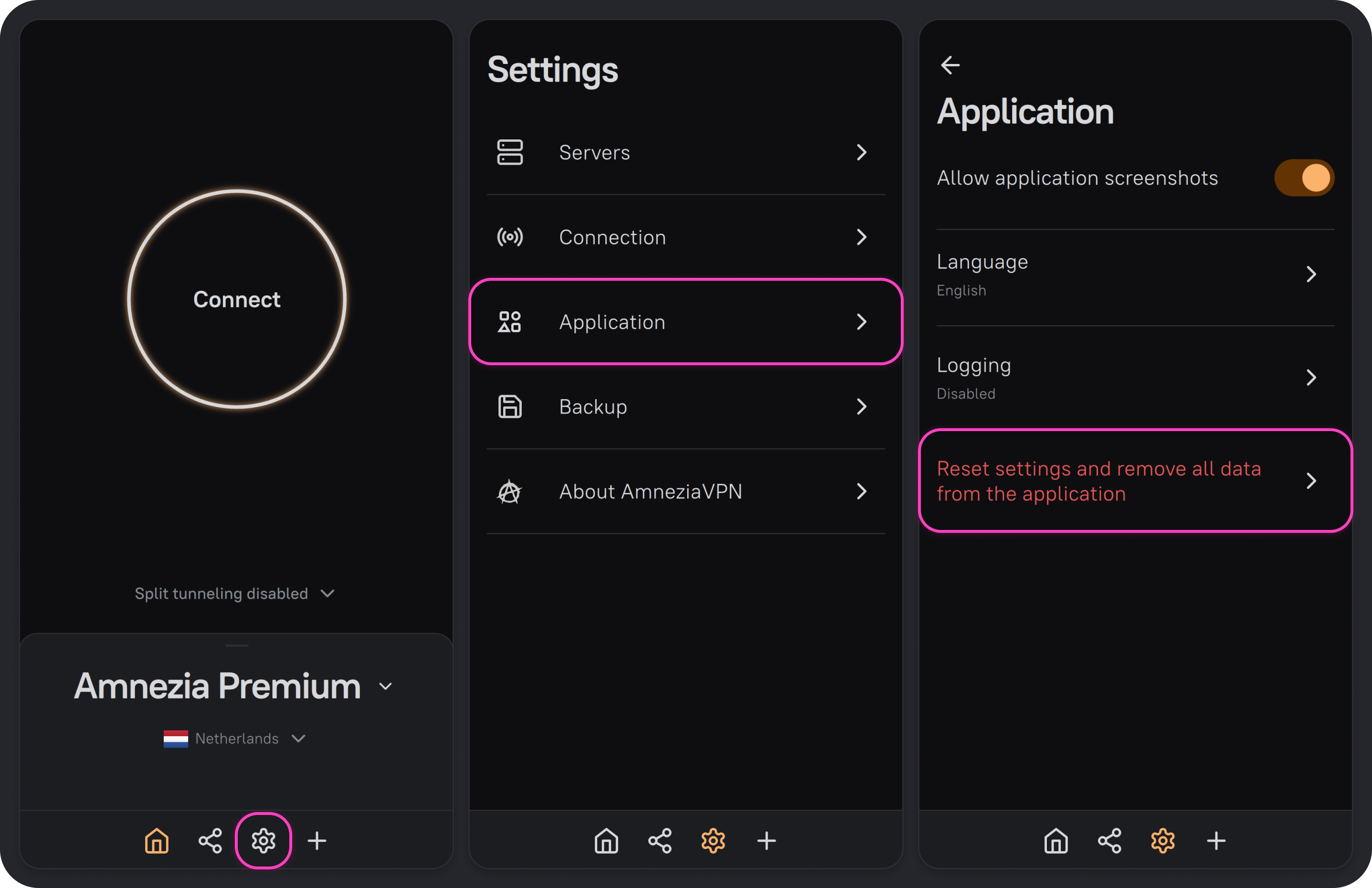 Encryption helps protect configuration and backup files from unauthorized access. For example, you can send an encrypted file to a friend so they can connect to the VPN without worrying about the file leaking online — without the password, no one can open the file in AmneziaVPN or view its contents.